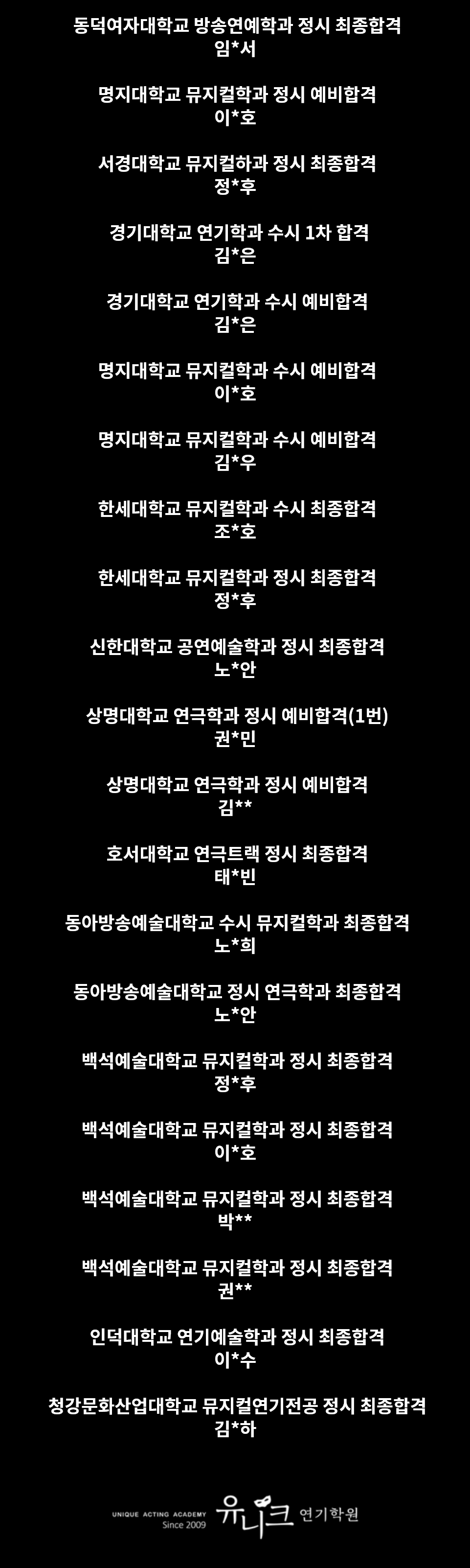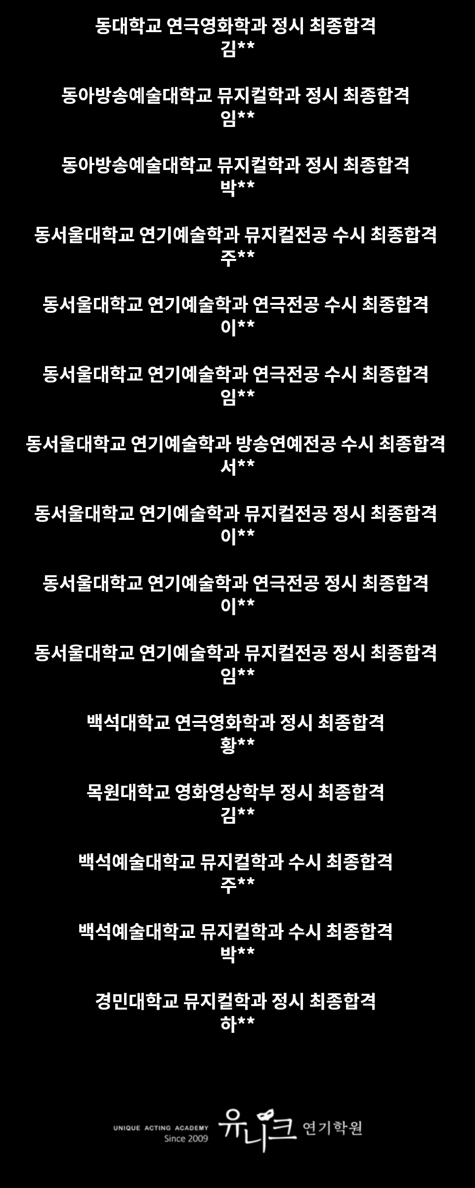 백석예술대학교 뮤지컬학과 수시 예비합격 김성학(6번) 김은우(8번)
