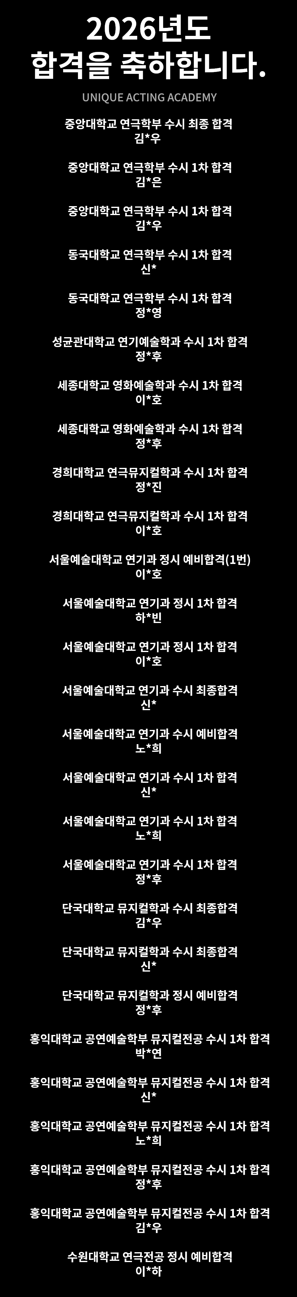 백석예술대학교 공연예술학부 뮤지컬전공 수시 최종합격 표수열